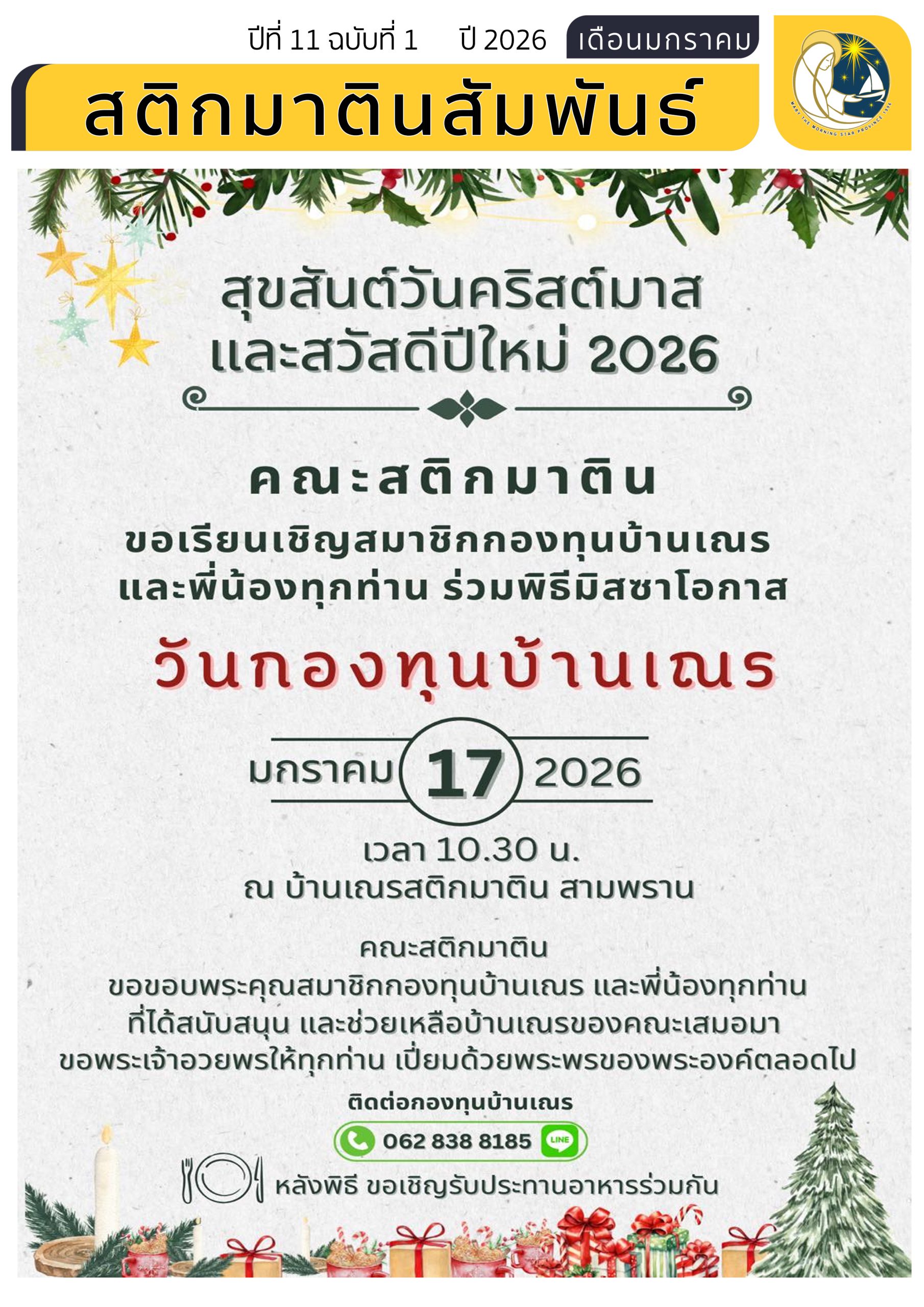 อ่านหนังสืออิเล็กทรอนิกส์ (Stigmatines E – book) สติกมาตินสัมพันธ์ – ก.พ. 2026 Together News – Mar-Apr 2026 สติกมาตินสัมพันธ์ – ม.ค. 2026 Together News – NOV-DEC 2025 Together News – Sept-Oct-2025 สติกมาตินสัมพันธ์ – ก.ค. 2025 TOGETHER NEWS – JULY-AUGUST 2025 สติกมาตินสัมพันธ์ – มิ.ย. 2025 สติกมาตินสัมพันธ์ – พ.ค. 2025 TOGETHER NEWS – MAY -JUNE 2025 “สติกมาตินสัมพันธ์ – เมษายน 2025” สติกมาตินสัมพันธ์ – มี.ค. 2025 12 12