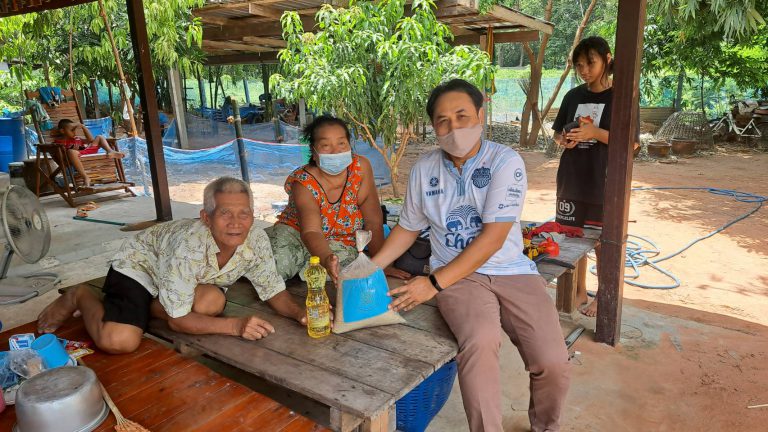 มอบข้าวสารและอาหารแห้งแก่สัตบุรุษช่วงโควิด 19 The pastor of St.Joseph Church distributed food to his parishioners during the Pandemic.