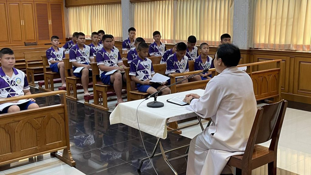 วันที่ 7 สิงหาคม ค.ศ. 2021 คุณพ่ออัมรินทร์ พันธ์วิไล คุณพ่อวิญญาณรักษ์ โปรดศีลอภัยบาปและเทศน์แบ่งปันให้กับสามเณรเล็กเปาโล นครราชสีมา โอกาสเข้าเงียบประจำเดือนสิงหาคม ที่บ้านเณรเล็กเปาโล นครราชสีมา