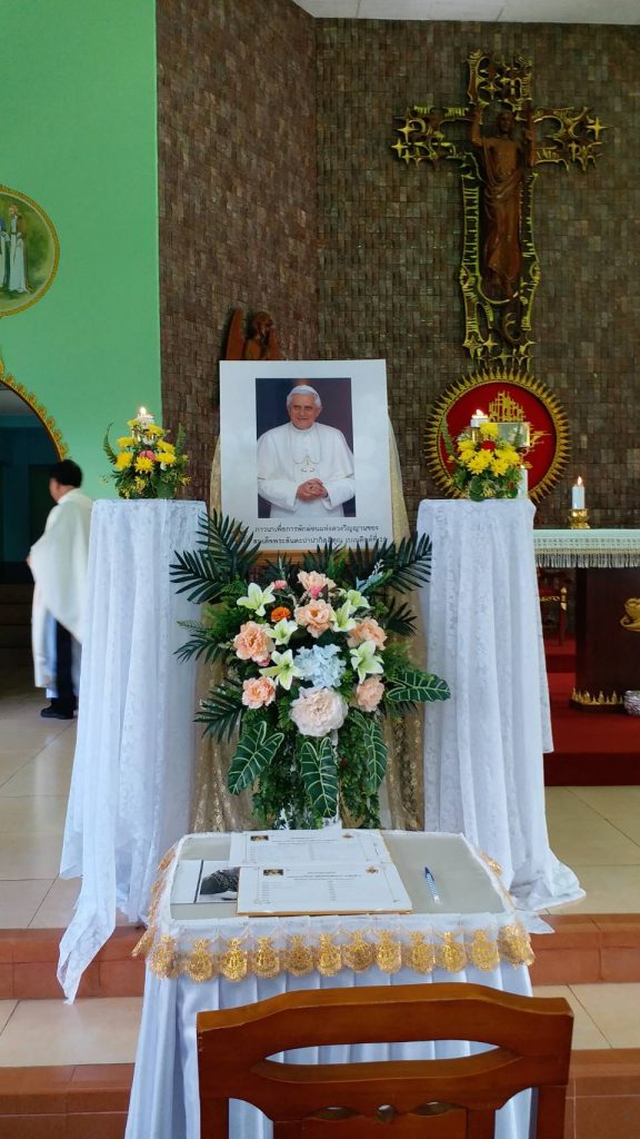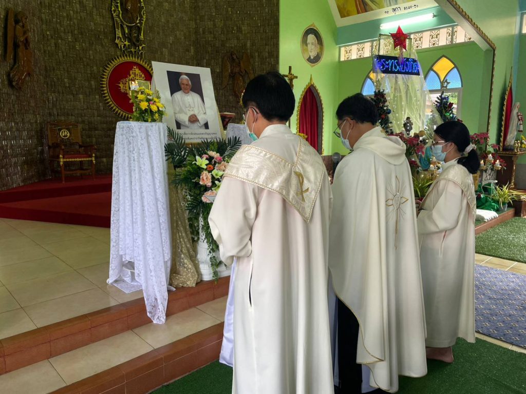 Fr. Sittichai Petkham, the pastor, celebrated the Requiem Mass for the soul of Pope Emeritus Benedict XVI, which was held on 8th January in St.Francis Xavier Church Trang.