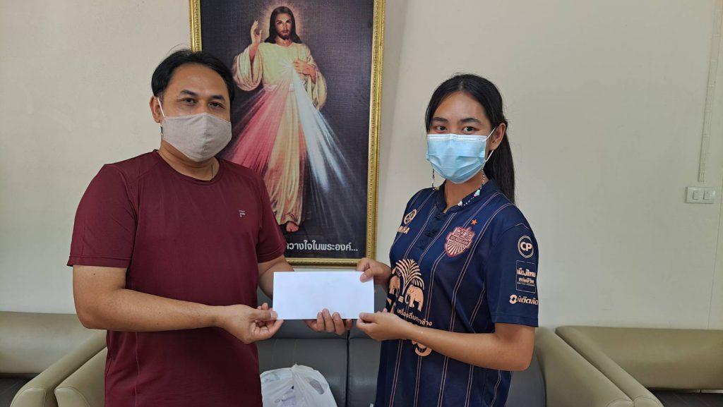คุณพ่ออัมรินทร์ พันธ์วิไลมอบทุนการศึกษาให้กับเด็กและเยาวชนจากศูนย์เยาวชนแบร์โทนีบ้านหนองห่าง อ.บัวลาย จ.นครราชสีมา เมื่อวันที่ 7 พฤษภาคม ค.ศ. 2021