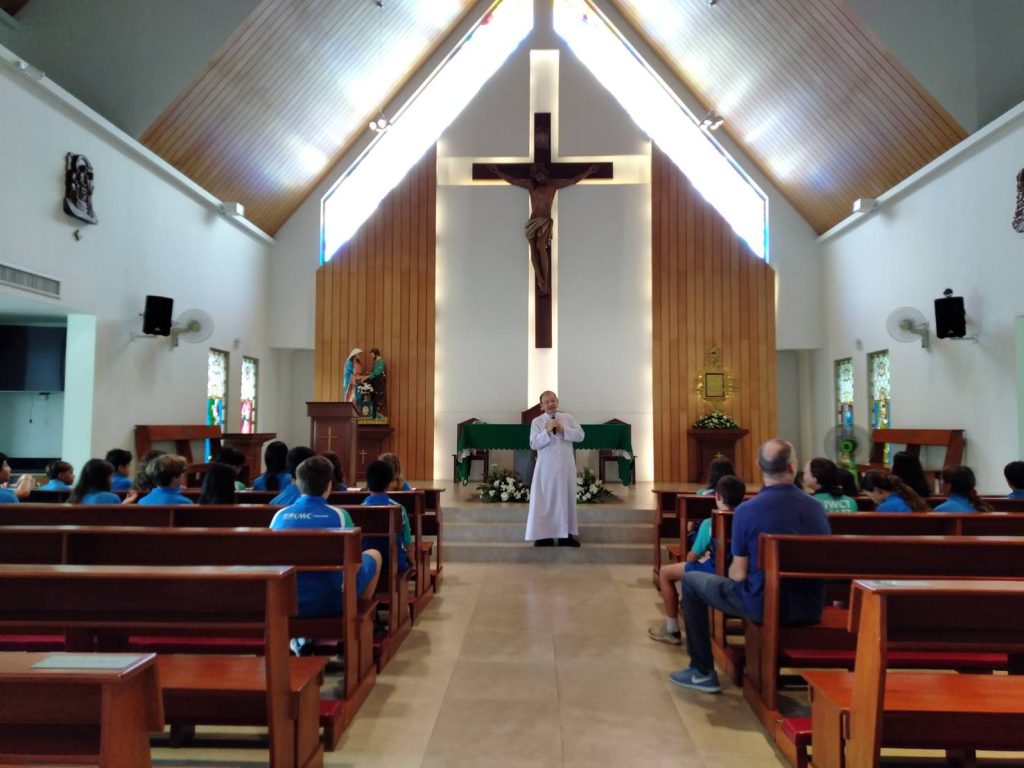 On September 22, 2023 Fr. Pipat Rungruangkanokkul, the pastor of St. Joseph Church in Cherngtalay, Phuket, shared the Christian faith with 30 students from United World College Phuket International School.